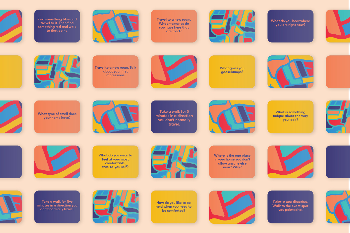 Rather than allow ourselves to wallow in our homes dreaming of a distant place, I’d like to challenge this phenomenon and see if there’s a way to embrace our extended times in our most immediate spaces with this card game.